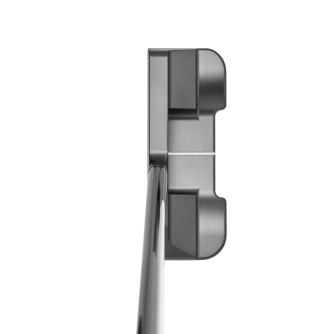 トップラインのセンターからややヒール寄りにシャフトが入っているのは、シャフトの延長線上にフェースのセンターが位置するように設計されているから。フェースの芯でボールを捉えることに集中でき、パッティングストロークのキュアリングにも貢献します。