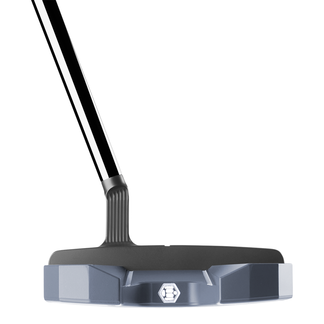 特徴的な六角形のカットアウトが作り出すふたつの刃はパターのM.O.I.(慣性モーメント)を最適化する形状になっています。