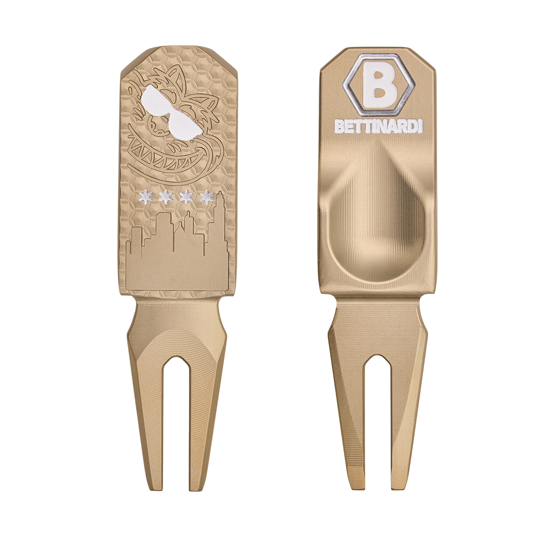 おもて面はハニカムパターンを施した上にサングラスをかけたファットキャットとシカゴのスカイラインを彫刻、うら面の持ち手は親指の当たる部分を抉(えぐ)り、その上にHexBロゴとBETTINARDIのワードマーク。