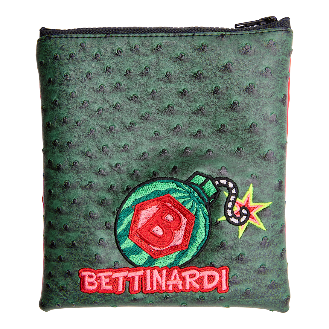 裏面はオーストリッチ調の生地にHexBボムとBETTINARDIのワードマークを刺繍。