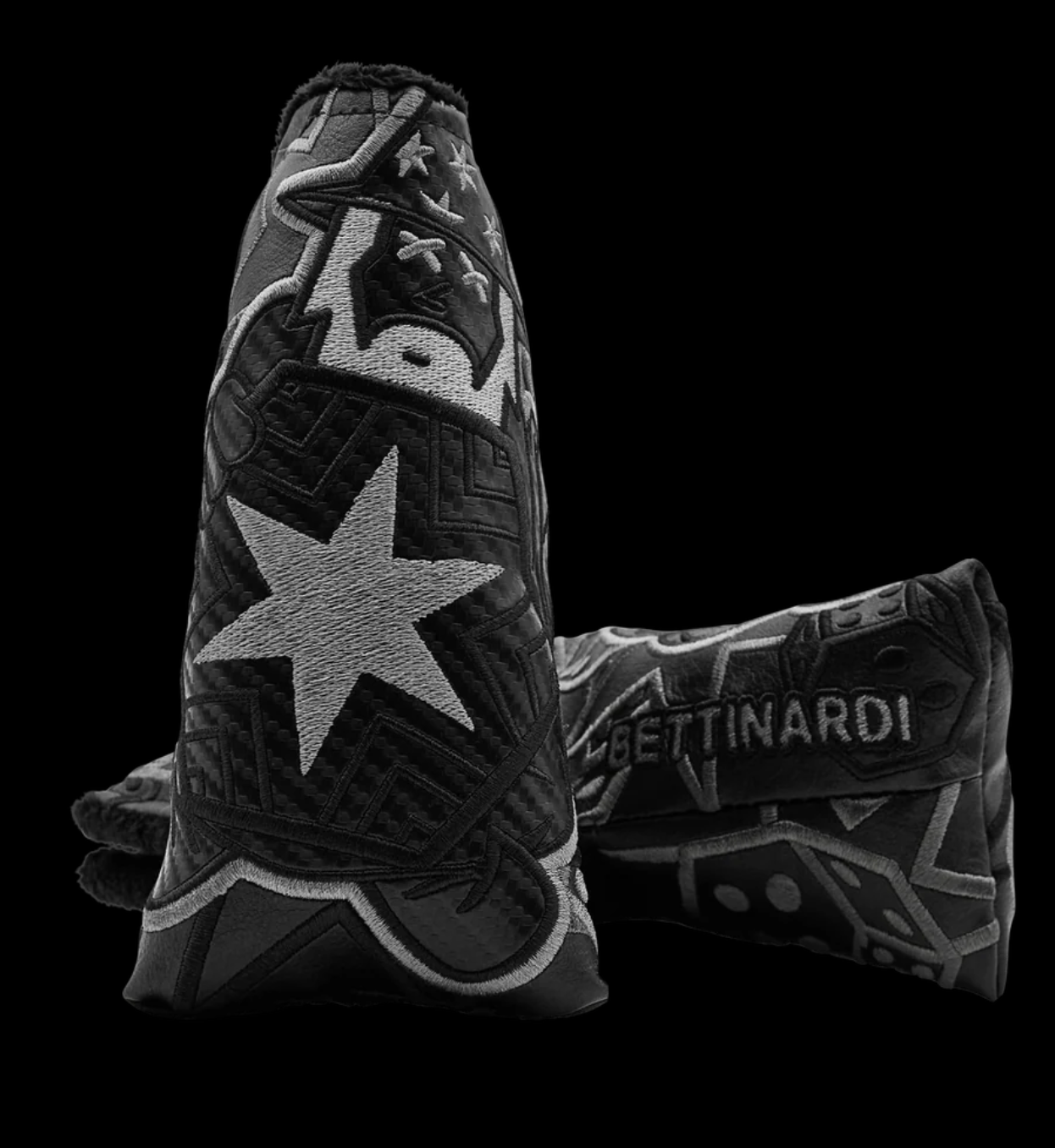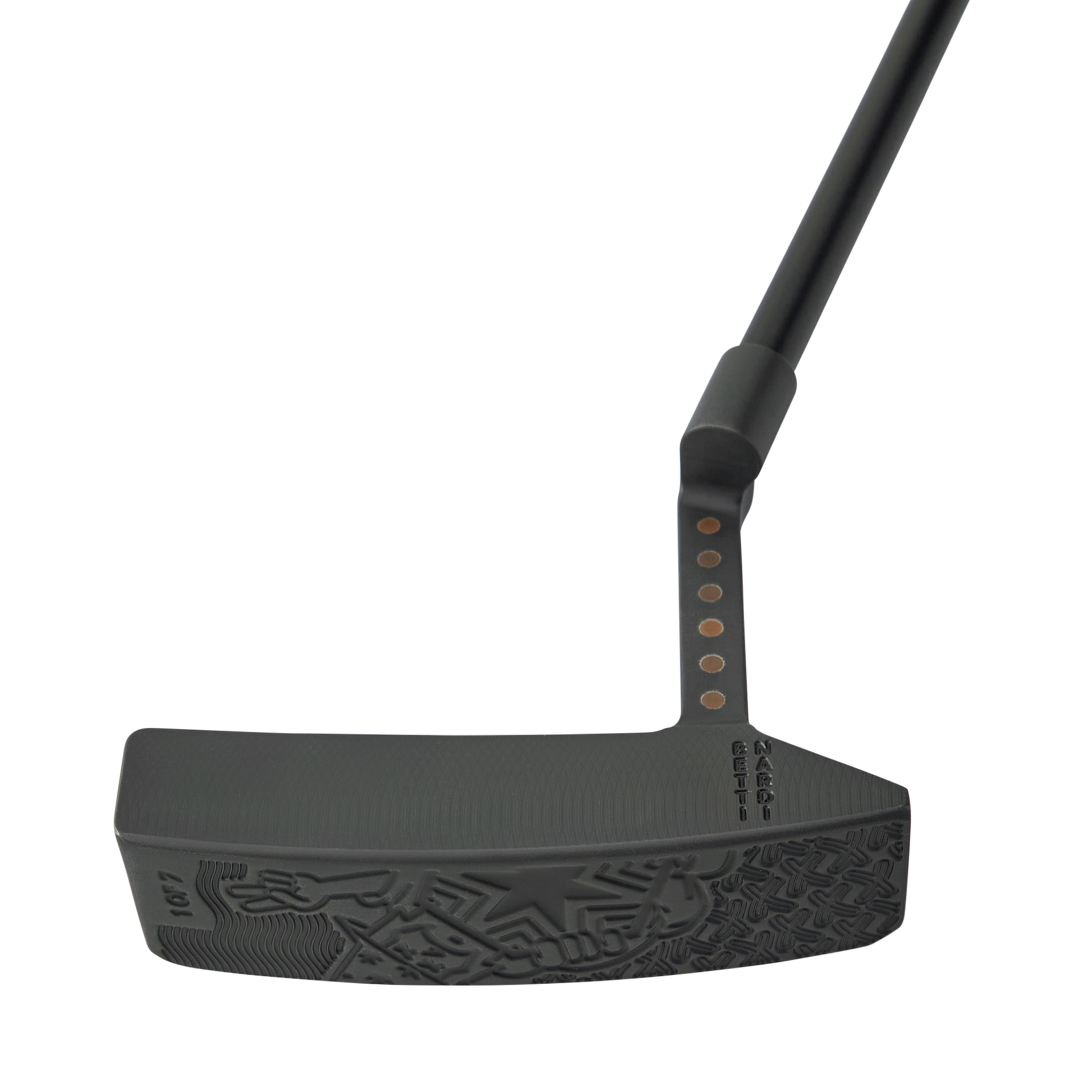 | The HIVE限定リリースのブラックアウトはたった7本しか生産されないナンバリング入りのDASSパターです。この3 Step JAMはDASSから削り出されたブラックOXフィニッシュのツアー専用モデルで、ネックにはカッパープラグをインサート、ソールにはPoison Lucky Wizardが彫刻されました。マットブラックPVDシャフトとブラックのグリップマスターが装着され、専用ヘッドカバーが付属します。 |