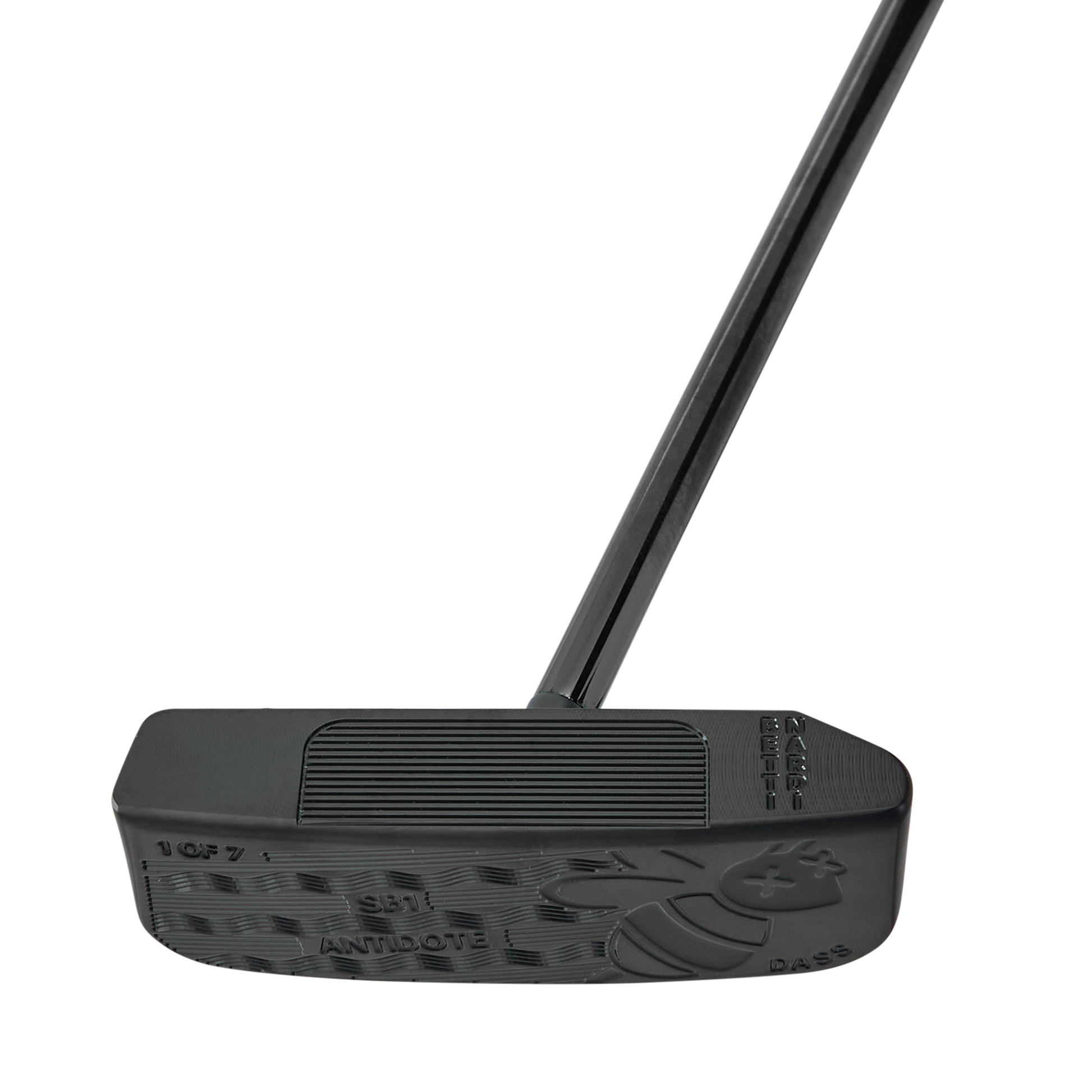 | The HIVE限定リリースのブラックアウトはたった7本しか生産されないナンバリング入りのDASSパターです。Antidote SB1は ボディをブラックPVD、ポケットインサートをブラックアナダイズで仕上げ、ソールにはブラックでペイントされたZombeeがデザインされています。マットブラックPVDシャフトとブラックのミッドサイズグリップが装着され、専用ヘッドカバーが付属します。 |