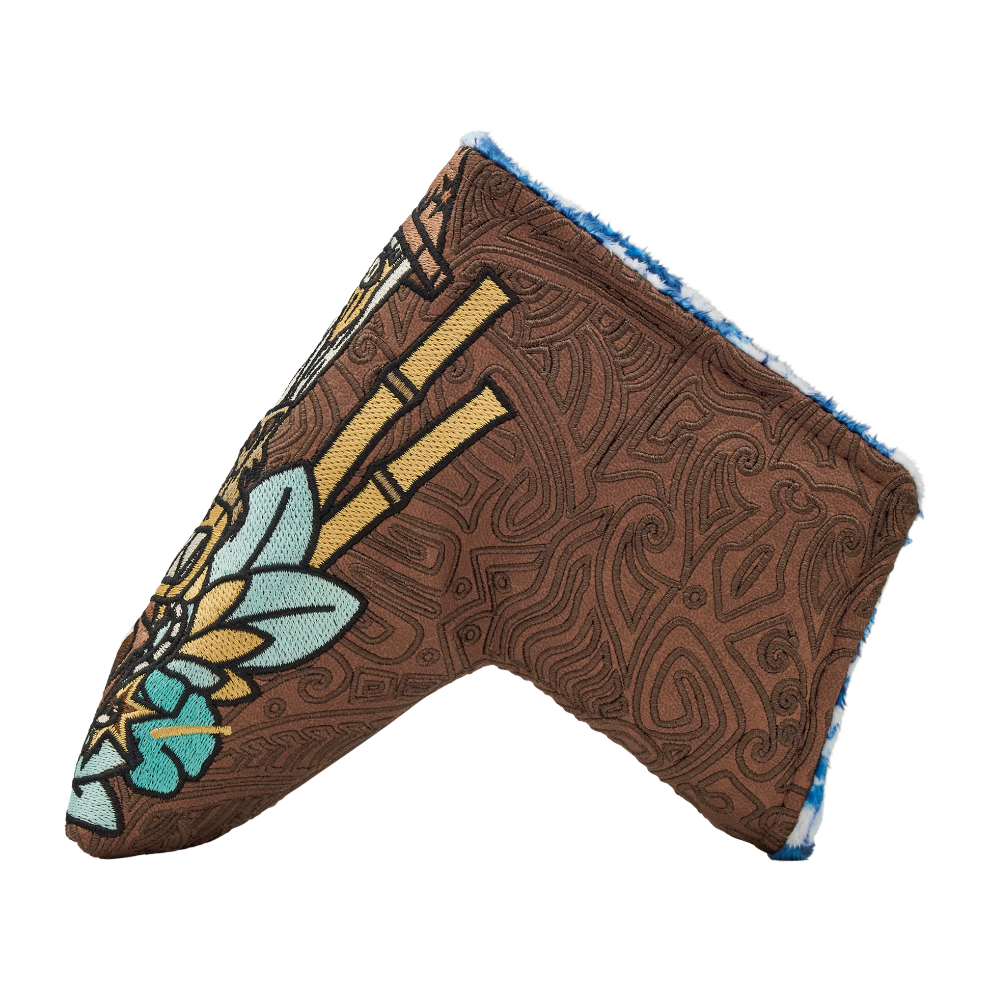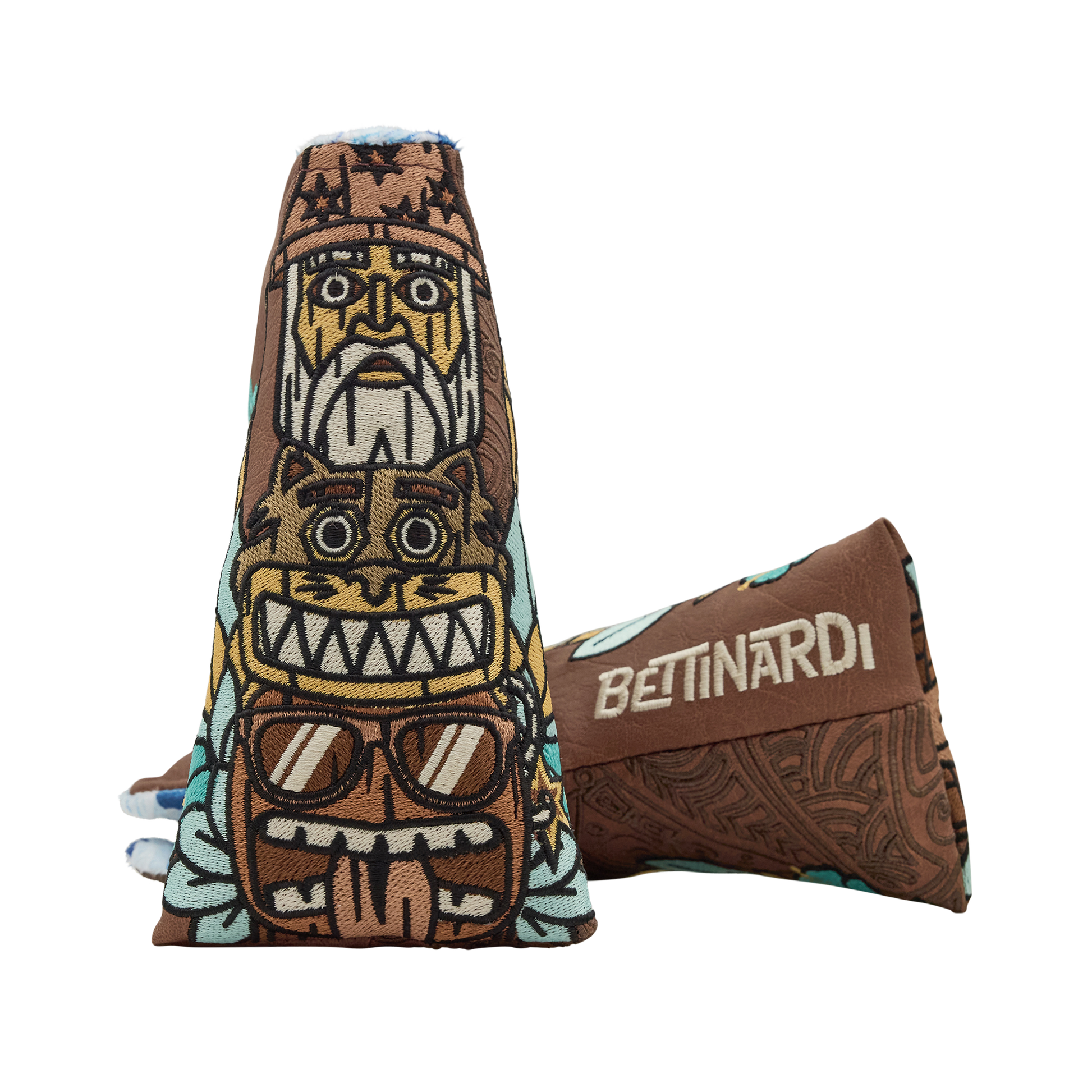 このブレードカバーは、アイコンをTIKI風に彫刻したデザインで、豊かな質感のブラウンベースにトライバルプリントから着想を得た刺繍があしらわれています。再度には Bettinardi のワードマークとトロピカルな Hex B がデザインされ、内側は青と白のハイビスカス柄の柔らかなファブリックで仕上げられました。日本では5個のみの発売です!