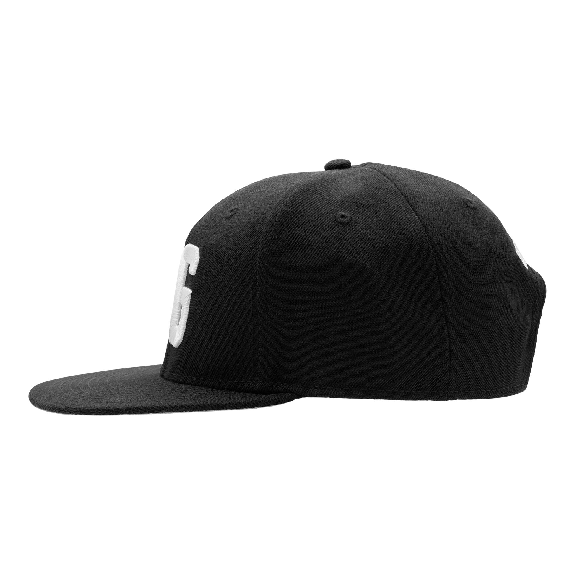 フラットプリムスタイルのベースボールキャップ。