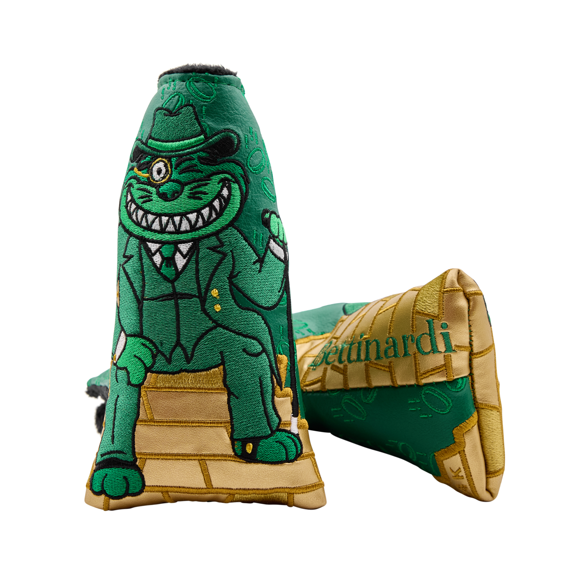 ゴールドの玉座に座るギャングスターキャットは、リッチな存在感がたっぷり。このブレードカバーは、グリーンのベースに金箔のアップリケが施され、内側を黒のプラッシュ素材で仕上げたマグネット式で日本発売数はわずか5個の貴重品です。
