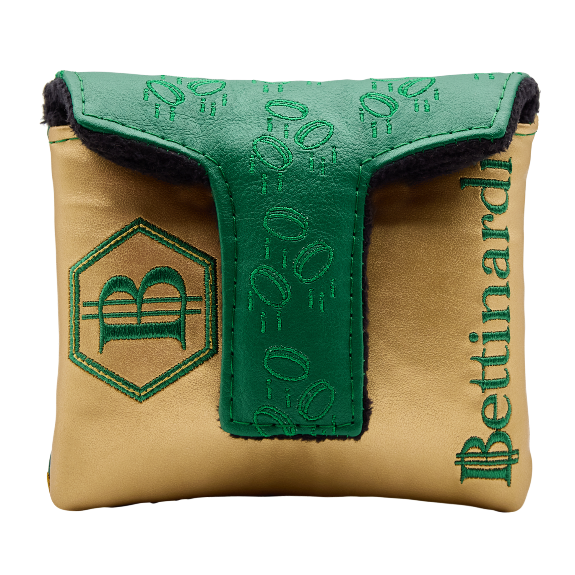 ゴールドの玉座に座るギャングスターキャットは、リッチな存在感がたっぷり。このマレット用カバーは、グリーンのベースに金箔のアップリケが施され、内側を黒のプラッシュ素材で仕上げたマグネット式で日本発売数はわずか3個の貴重品です。