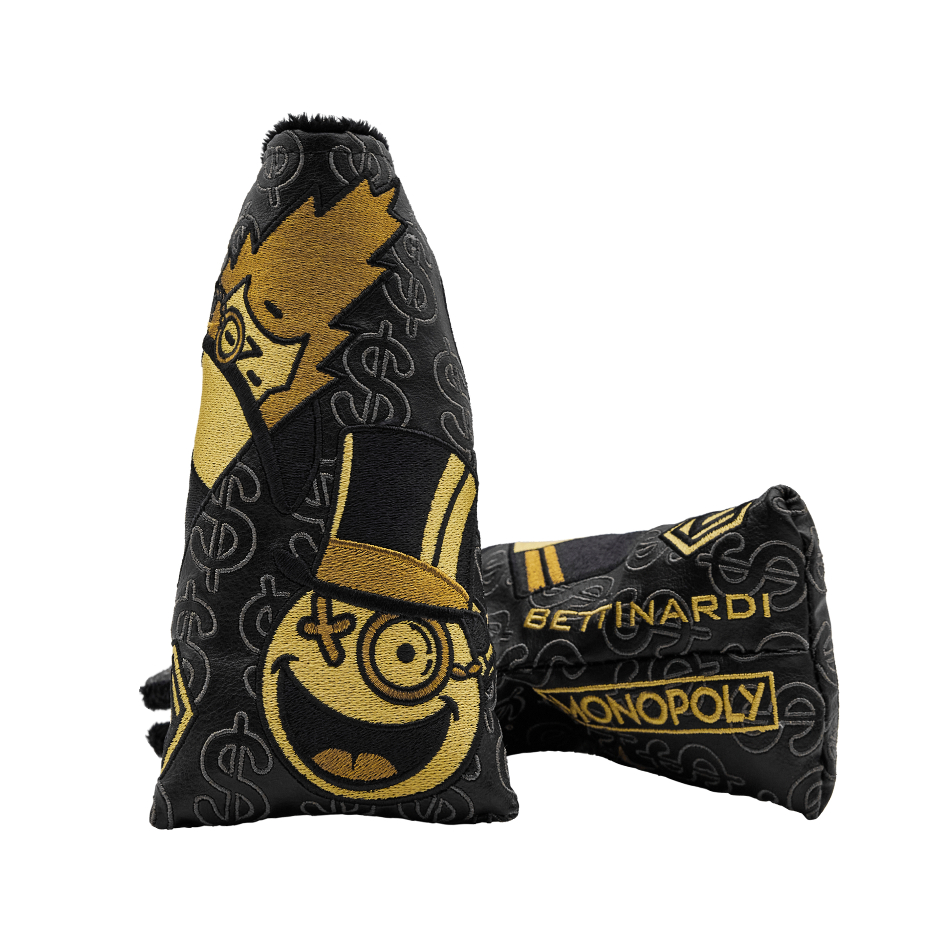90周年を迎えるMonpolyをお祝いしましょう!このアイテムはMr.モノポリーとギャンスターアイコンが集結しスリルのある追跡とマネーゲームを表現した、ブラックとゴールドカラーのゴージャスなパターカバーです。