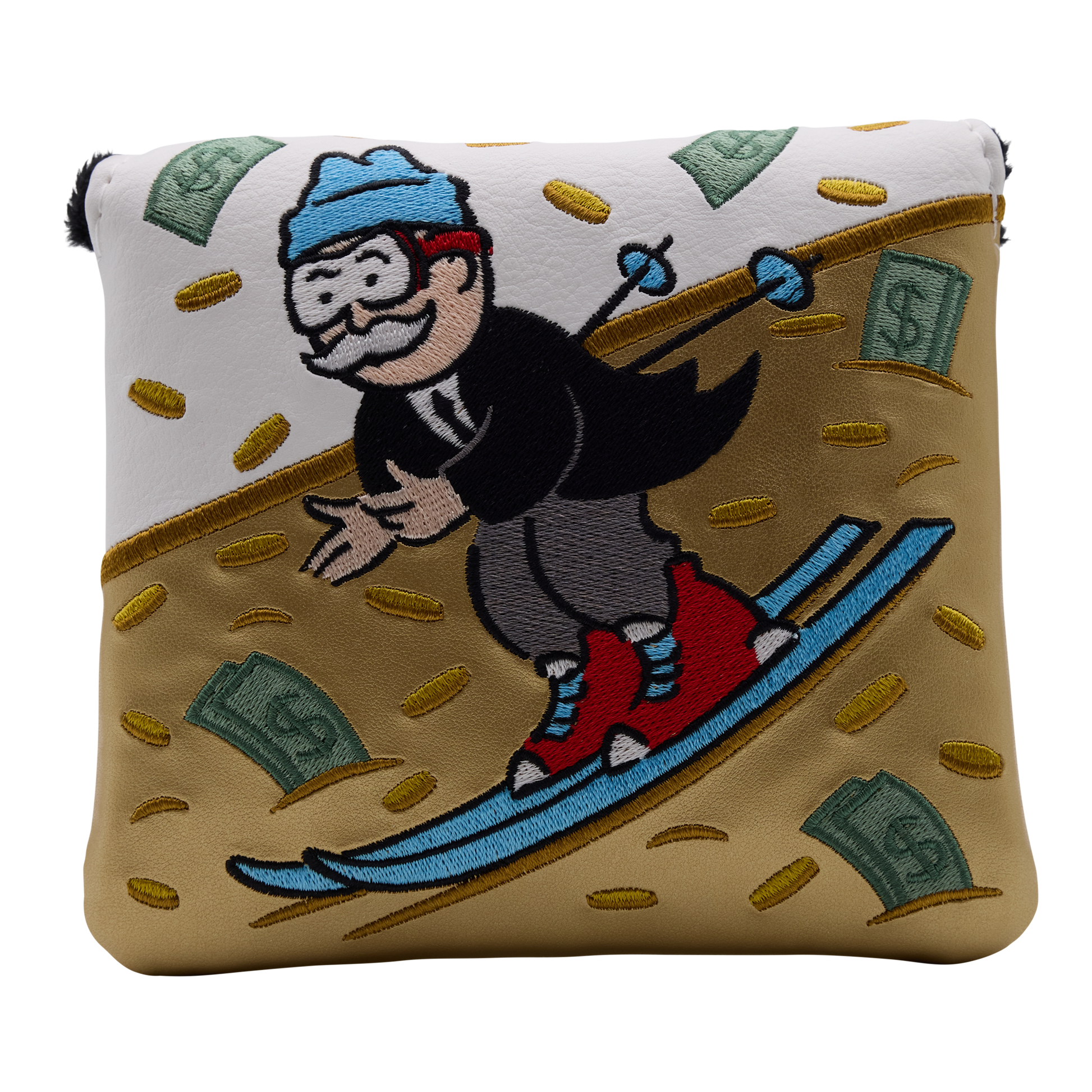 | チャンスを掴んでゲレンデへ、あるいはコースへ!Mr. Monopolyは現金の山を滑走し次の冒険へと駆け上がります。ホワイトベースに豪華なゴールドがあしらわれたこの逸品は、ゲームのスリル――取引を成立させる時、そしてパットを沈める時――などを遊び心たっぷりに表現しています。 |