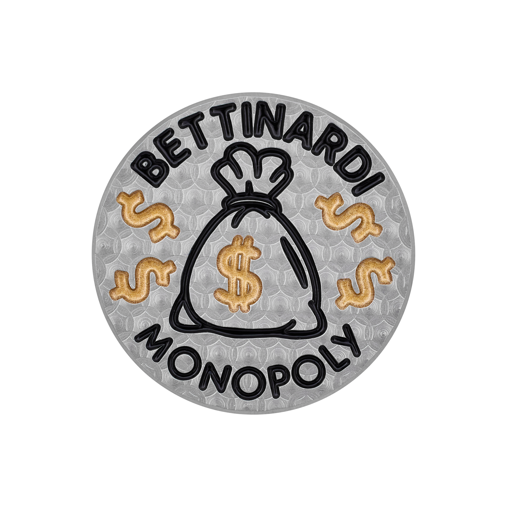 | Bettinardi x Monoolyコレクションをあなたの手に!この限定ボールマーカーは、フロントにMr. Monopolyのマネーアイ、バックには定番$サインとマネーバッグがあしらわれています。さあ、今すぐサイコロを振って手に入れましょう |